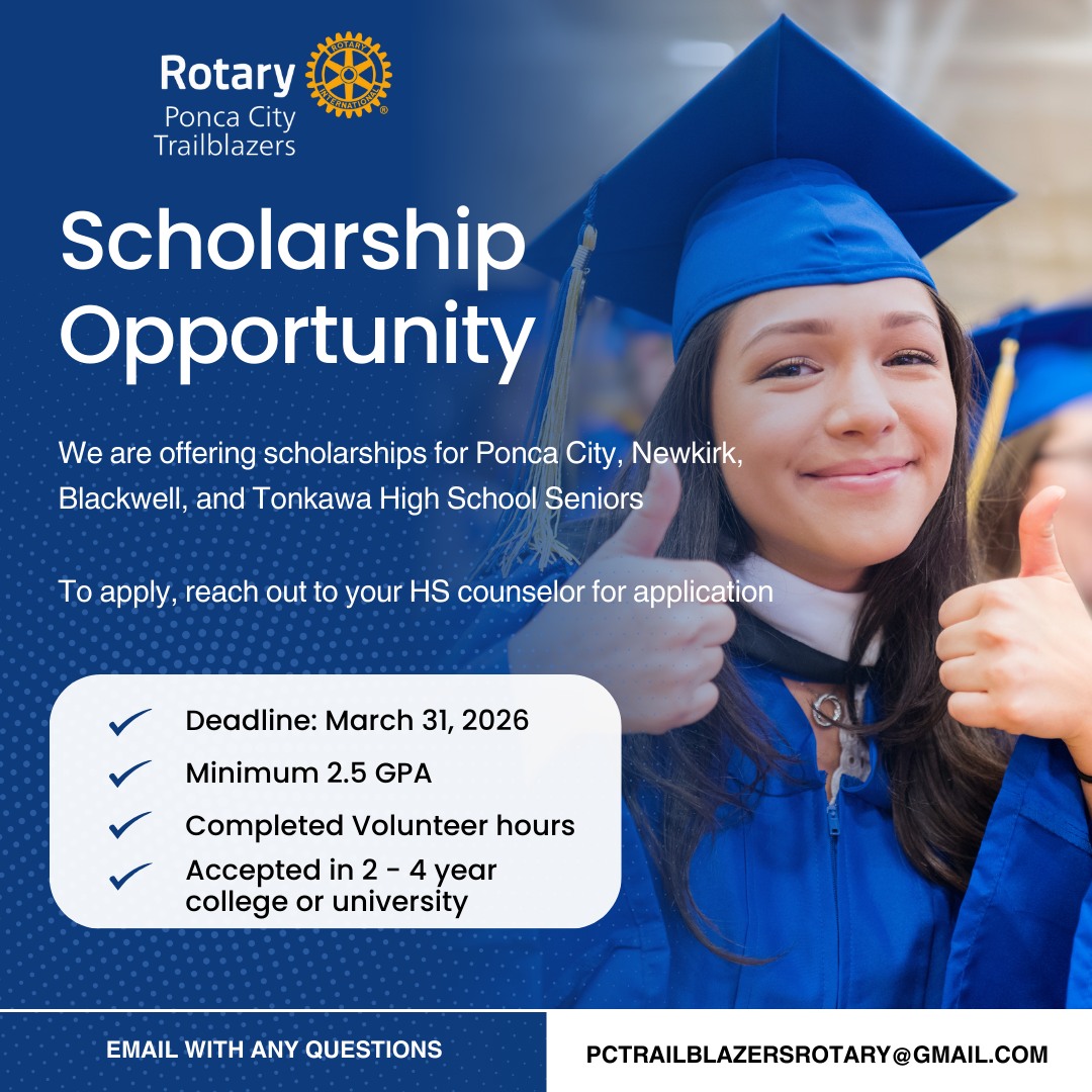 The Ponca City Trailblazers Rotary Club is proud to award five scholarships to graduating seniors who live out Service Above Self through leadership, kindness, and community involvement.
